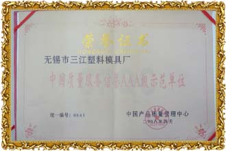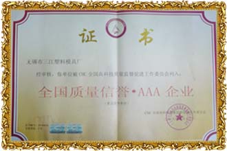 無錫新三江塑料科技有限公司 公信認(rèn)證 無錫市三江塑料模具廠 公信認(rèn)證 全國質(zhì)量信譽(yù)AAA企業(yè)證書